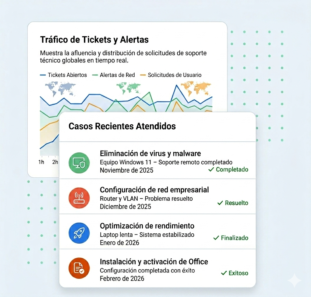 Un método profesional de soporte técnico remoto, diseñado para diagnosticar y resolver fallas de manera rápida, segura y efectiva, sin que tengas que salir de casa o tu empresa.